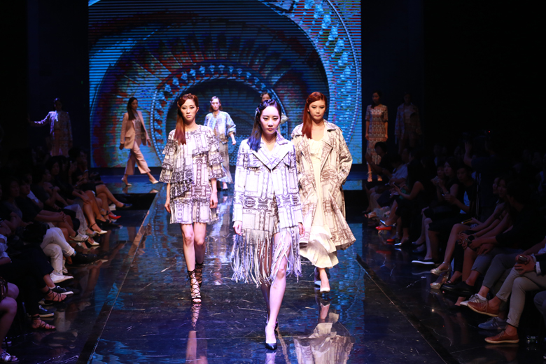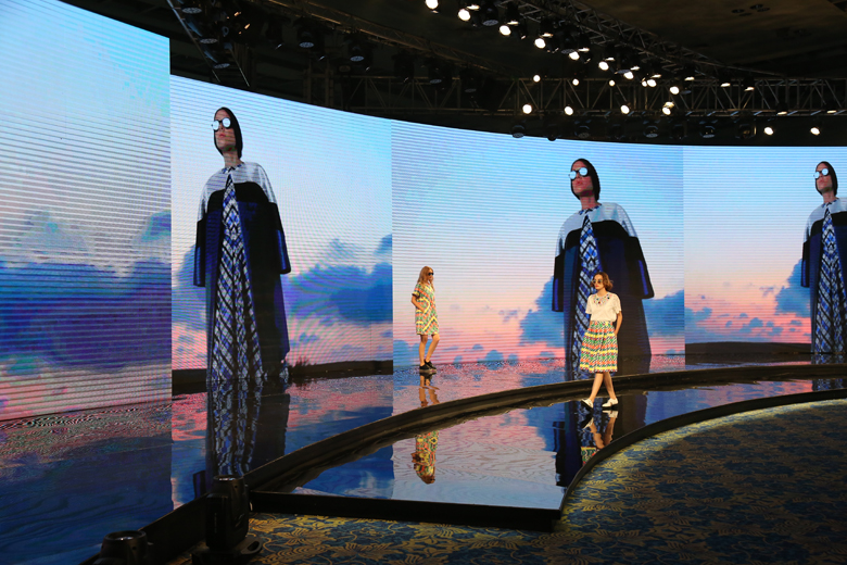 國時裝是紅棉國際時裝城的一支重要時尚力量,8月25日,“韓國時尚”接棒,旅居意大利米蘭的韓國設計師Rick Lee帶著他的最新作品炫麗登臺。秀場充滿著公路電影的即視感,從西方走到東方,從基督教到伊斯蘭教,風景的更迭、文化的碰撞暗喻設計師生于韓國、盛于米蘭的背景。信仰與藝術的交匯,碰撞出一系列美輪美奐的數碼印花,設計師采用大量拼接、挖空的幾何切割來突出摩登未來感。兩種音樂的應用讓觀眾產生時空錯位,與秀場主題緊緊呼應。Rick Lee的發布獲得了在場嘉賓、觀眾的一致贊嘆。