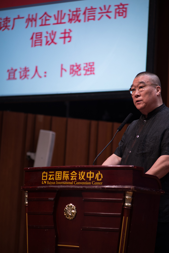 會上,廣州“三會”主席團主席卜曉強宣讀廣州企業誠信興商倡議書;廣州“三會”會長王東勝發表重要講話;廣州市原副市長劉錦湘向紅棉國際時裝城等兩家企業頒發首批“廣州市企業創新創業示范基地”榮譽牌匾。