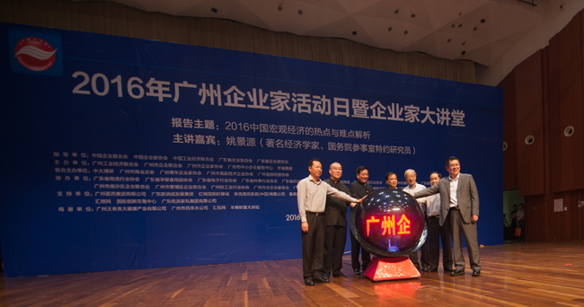 2016年4月25日下午,由廣州工業經濟聯合會、廣州市企業聯合會、廣州市企業家協會(簡稱“三會”)、廣州市中小企業服務中心、羊城晚報共同主辦的“2016年廣州企業家活動日暨企業家大講堂”活動在廣州白云國際會議中心舉行。