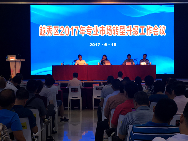 6月19日下午,卜曉強總經理與連健文總經理助理,參加越秀區商務局于白馬服裝市場召開的“越秀區2017年專業市場轉型升級工作會議”。區商務局、區市場和質量監管局、區公安分局等相關職能部門就專業市場轉型升級和安全工作進行發言。會議邀請各街道辦事處、行業商協會、專業市場等單位負責人近200人參加了會議。