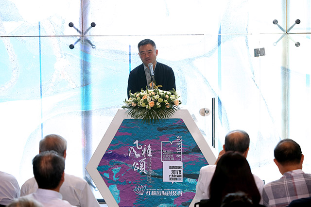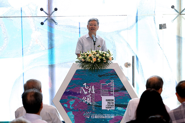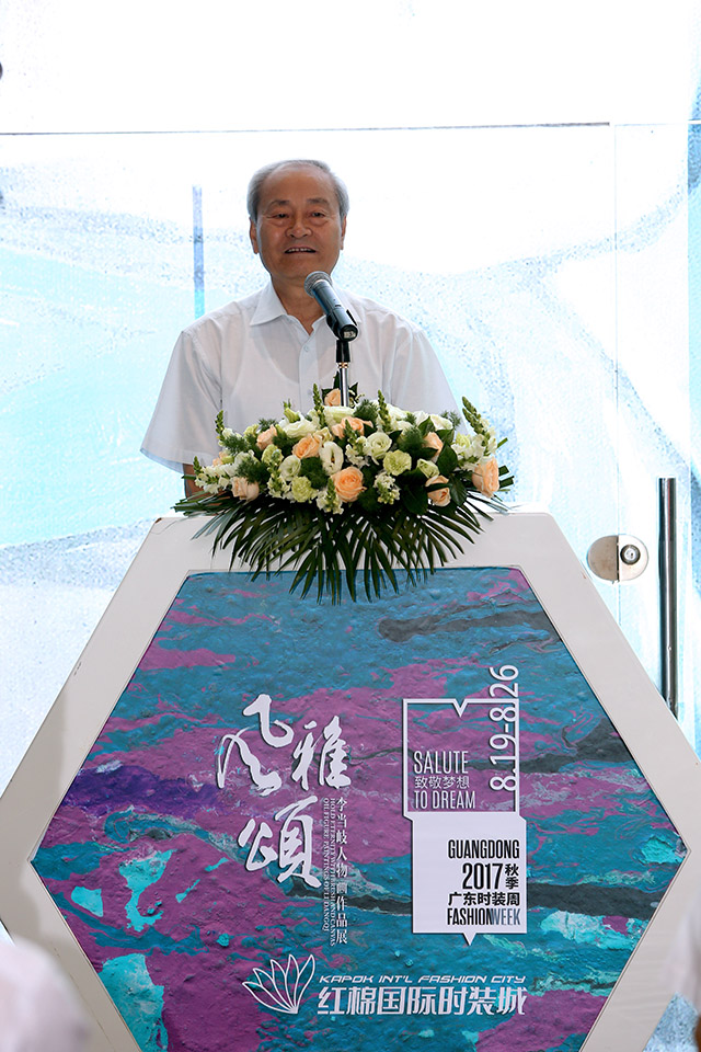 中國服裝設計師協會原主席、清華大學美術學院教授李當岐鄭重地向杜鈺洲表示感謝,老會長杜鈺洲堅持創作的精神激發了他重拾畫筆的決心,感謝為畫展獻出墨寶,寫下“風雅頌”的題字;此外,他又衷心感謝紅棉促成了本次展覽在廣東時裝周的舉行,提供了一個與行業同仁進行文化交流的機會。