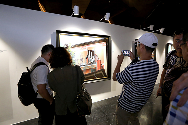 開幕式后,領導、嘉賓及觀眾步入展廳,參觀畫作。參觀中,李當岐教授逐一陳述創作體會,各位領導熱烈討論。對于李當岐教授的藝術造詣表達出高度認可。稱贊其畫作視覺獨特、手法寫實、畫風細膩。