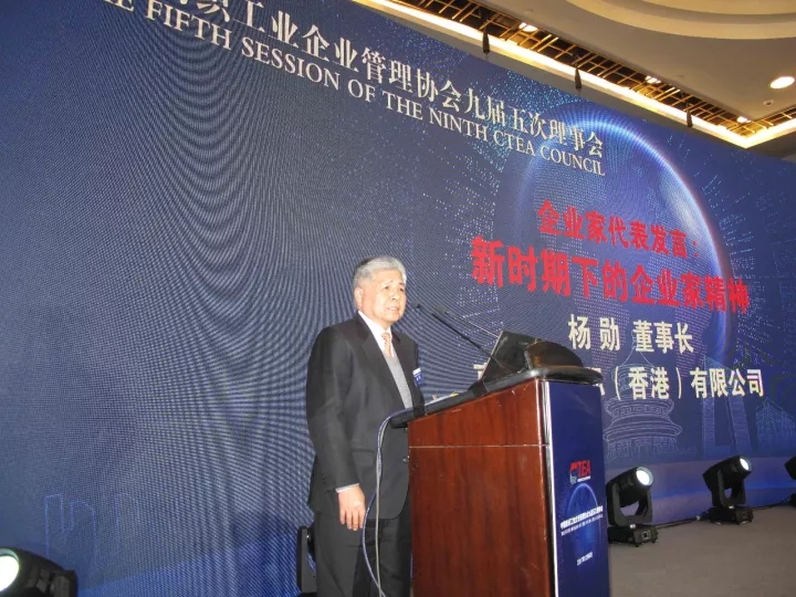 真維斯國際(香港)有限公司董事長楊勛作“新時期下的企業精神”主題演講。他表示,如果沒有傳統文化的力量,如果沒有中國共產黨領導下的新中國,就不會有我們國家今天的成就。在過去改革開放時,人民收入的60%要來滿足溫飽,現在人們對生活質量的要求提高了,對企業而言也面臨著更大的要求和挑戰,從過去發展追求的“大”,轉換成現在形勢要求下的“強”,走一條發展的富強之路。