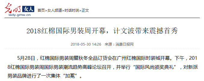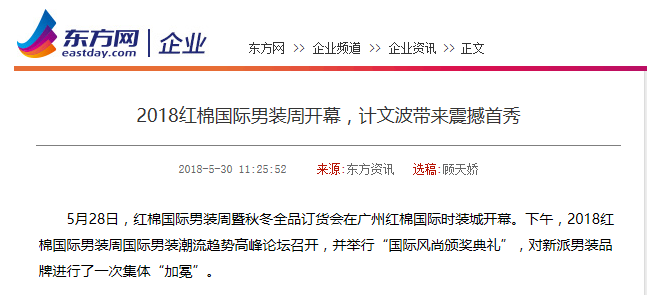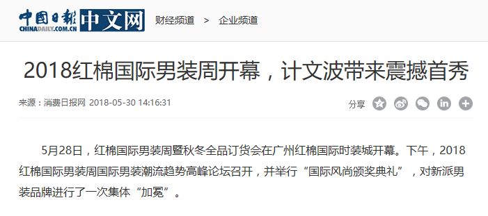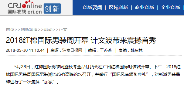 本次紅棉國際男裝周在業(yè)界引起了極大的轟動,吸引了無數(shù)人的關(guān)注,并且獲得了十余家主流媒體的報道。