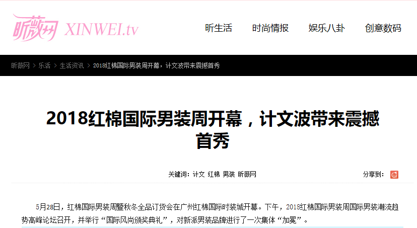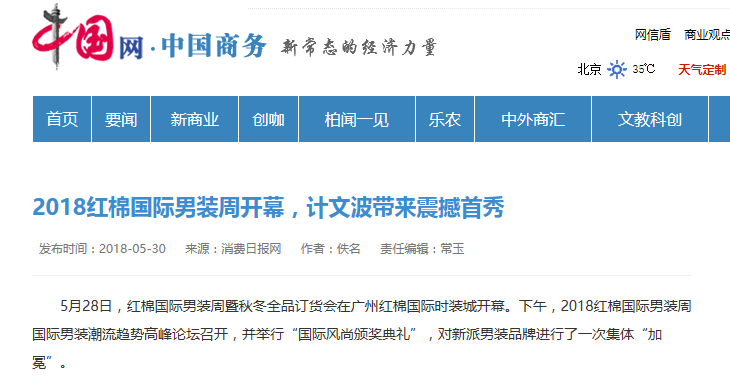 2018紅棉國際男裝周開幕,計文波帶來震撼首秀獲多家主流媒體報道
