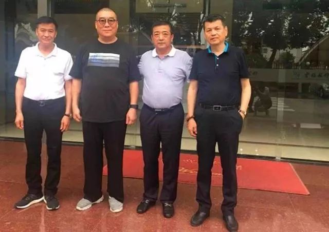 中國紡織工業企業管理協會常務副會長楊峻(右一)與江江蘇云蝠服飾股份有限公司董事長郭健(右二);福建新華源發展集團董事長陳宗立(左一);廣州市紅棉國際時裝城總經理卜曉強(左二)。