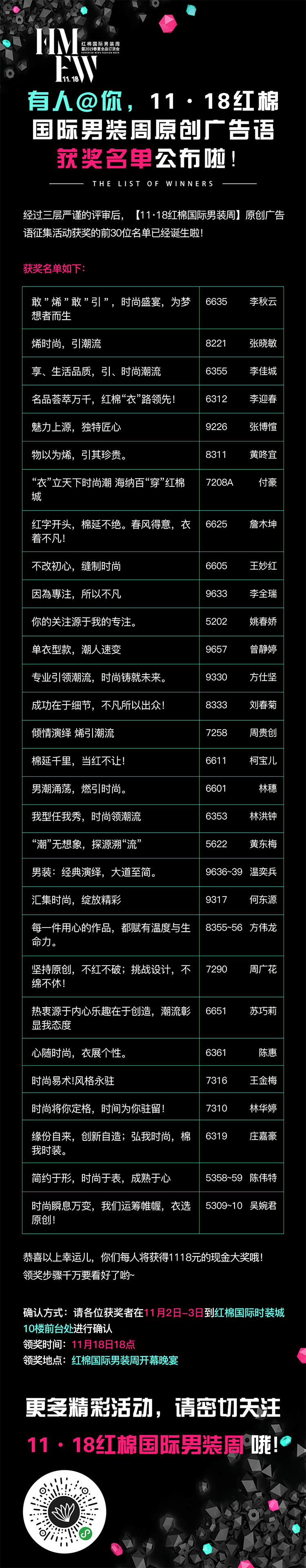 1118紅棉國際男裝周原創廣告語獲獎名單公布啦!!!