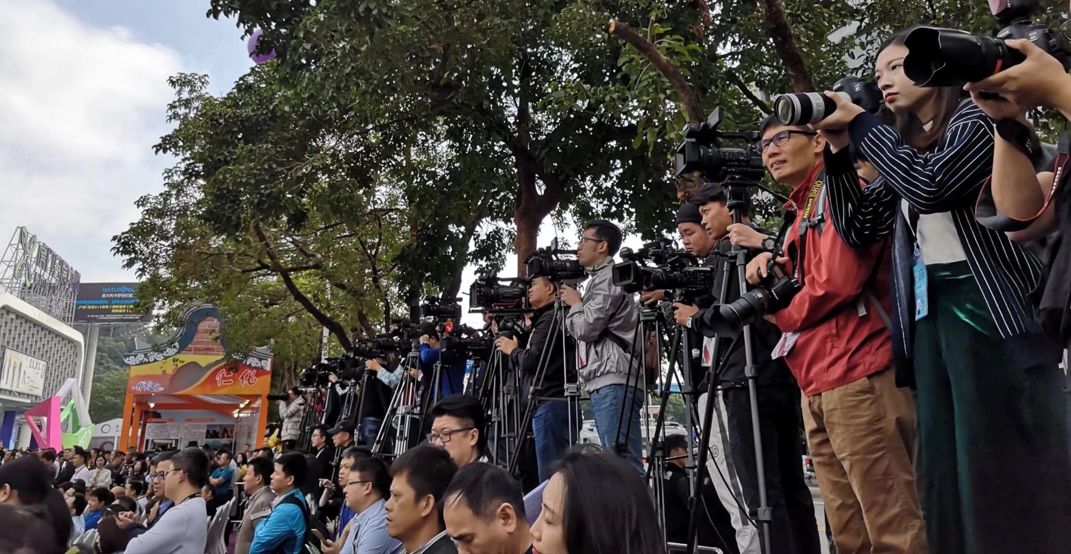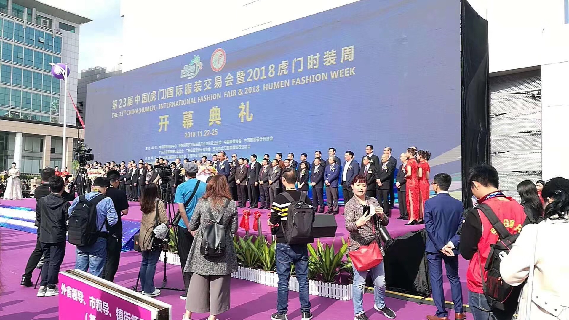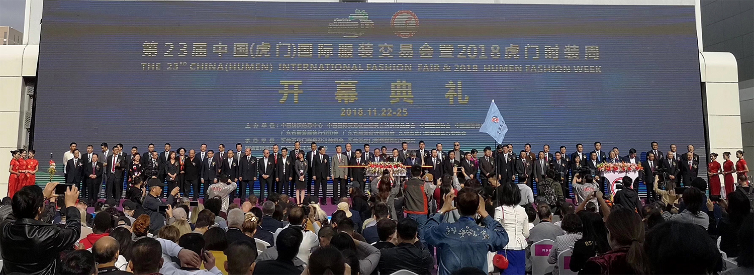 今天上午,紅棉國際時裝城總經理卜曉強參加虎門國際服裝交易會開幕式。