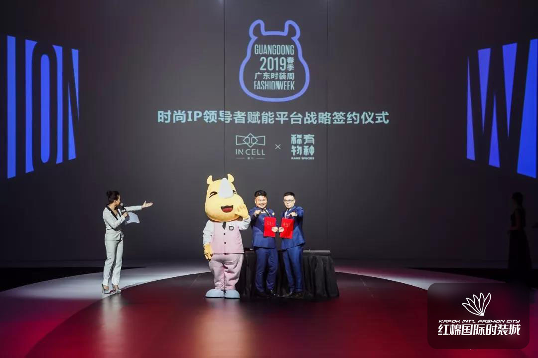 開幕式上,時裝周承辦單位之一廣州潮社創意咨詢有限公司分別與全球知名的IP運營和授權合作伙伴香港山成集團、中國領先的IP賦能機構稀有物種達成戰略合作并在現場進行了簽約。
