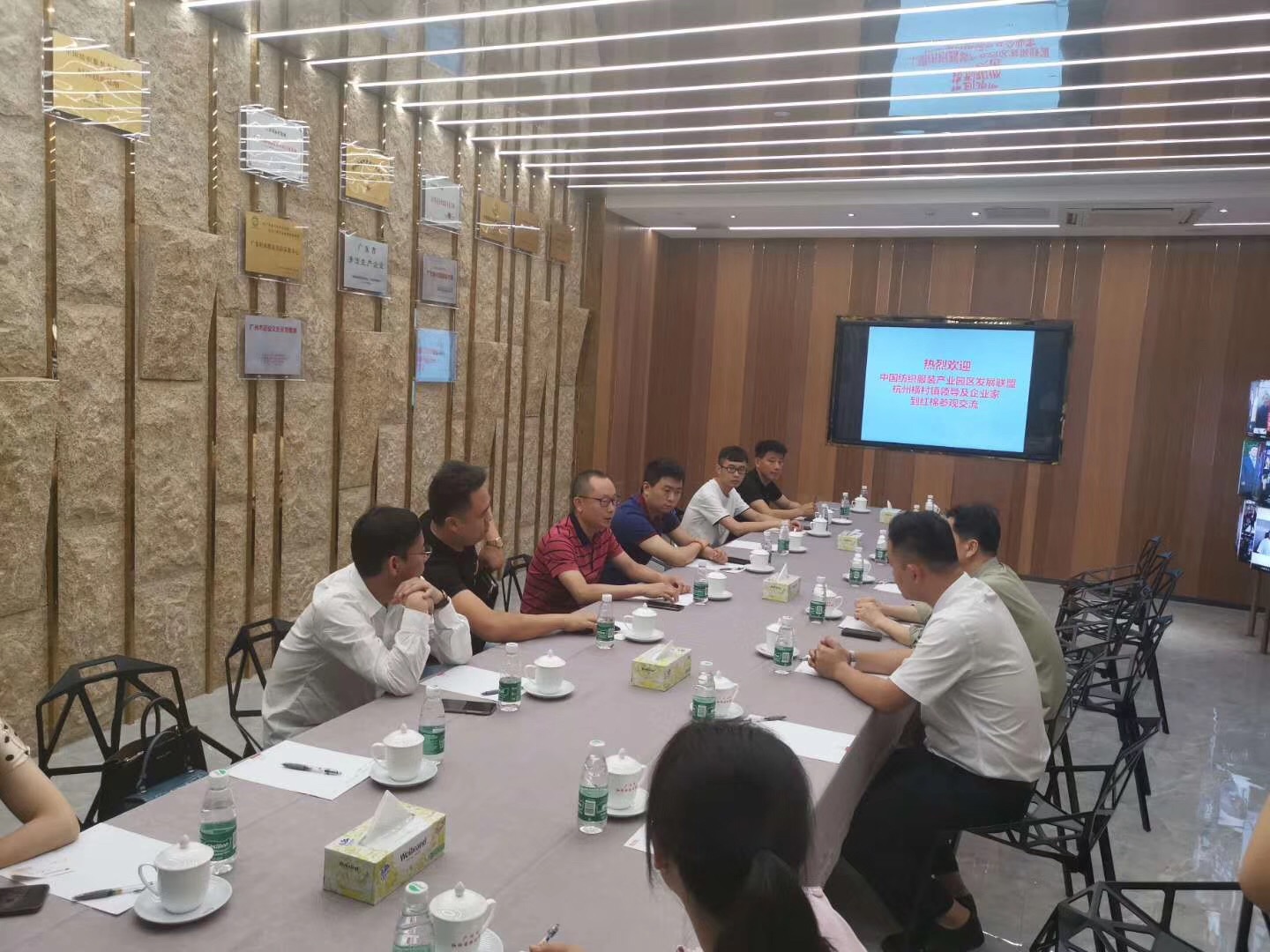 盧總接待浙江桐廬橫村鎮(zhèn)政府的書記、鎮(zhèn)長及商會,企業(yè)家一行在紅棉參觀交流