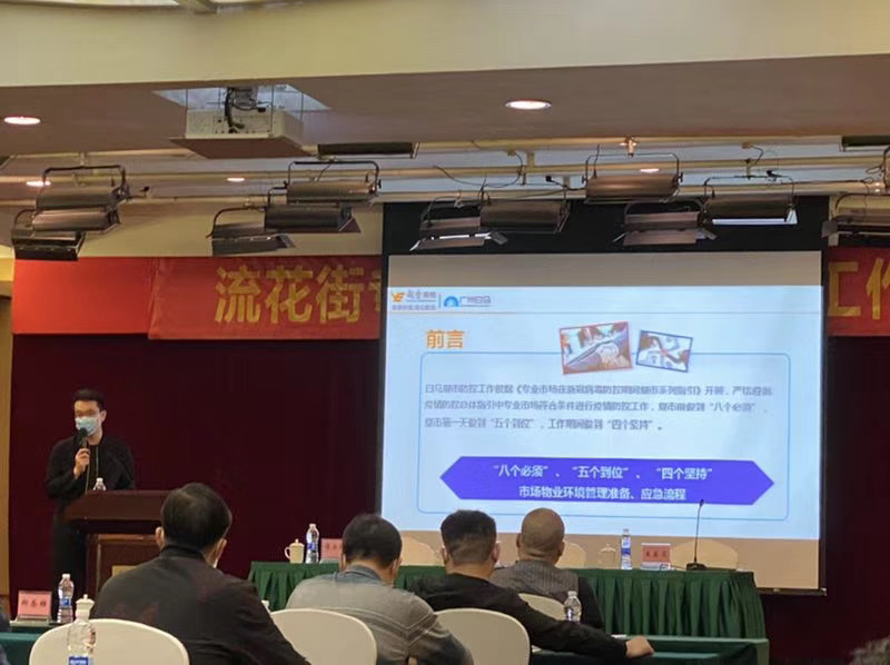 上午,流花街專業市場復工復產工作會議在流花賓館召開。大會由流花街黨工委高書記主持,街道辦事處王葵霞主任,區服裝商會李聲樂會長,紅棉等重點市場參加了會議。